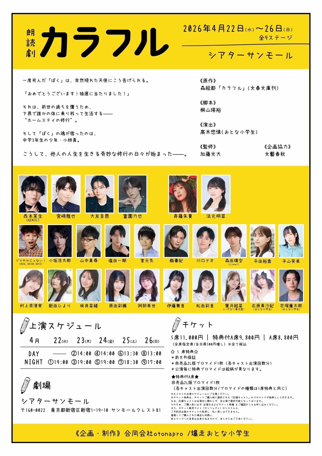 不朽の名作『カラフル』朗読劇プロジェクト、おとな小学生にて再び上演決定‼