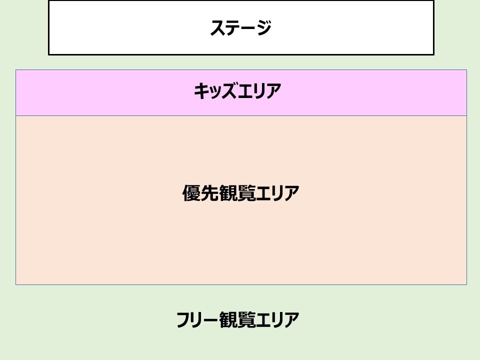 当日会場にて対象商品をご購入いただいた方へお渡しする「優先観覧エリア入場整理券」(以下、「入場券」)をお持ちの方から優先的にご入場いただきます。